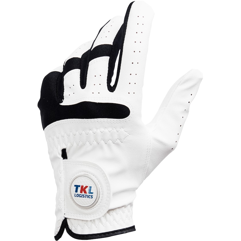 Golfhandschuh mit Logofläche. Der Handschuh eignet sich für jedes Wetter und ist mit zusätzlichen Ledereinsätzen an der Handfläche und am Daumen verstärkt. Dank des schwarzen Lycra-Einsatzes sitzt der Handschuh gut. Die Logo wird durch 4-farbigen Fotodruck auf dem Ballmarker aufgebracht, der mit einem Magneten befestigt ist. Mischen Sie frei zwischen Herrenhandschuh links/rechts in den Größen S, M, M/L und XL und Damenhandschuh links in den Größen S, M und L.