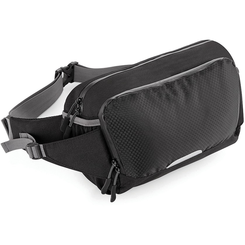 Leichte, robuste Gürteltasche für den Sport. Die Tasche ist wasserbeständig. Neben der Fronttasche hat sie zwei Netzfächer für Wasserflaschen.