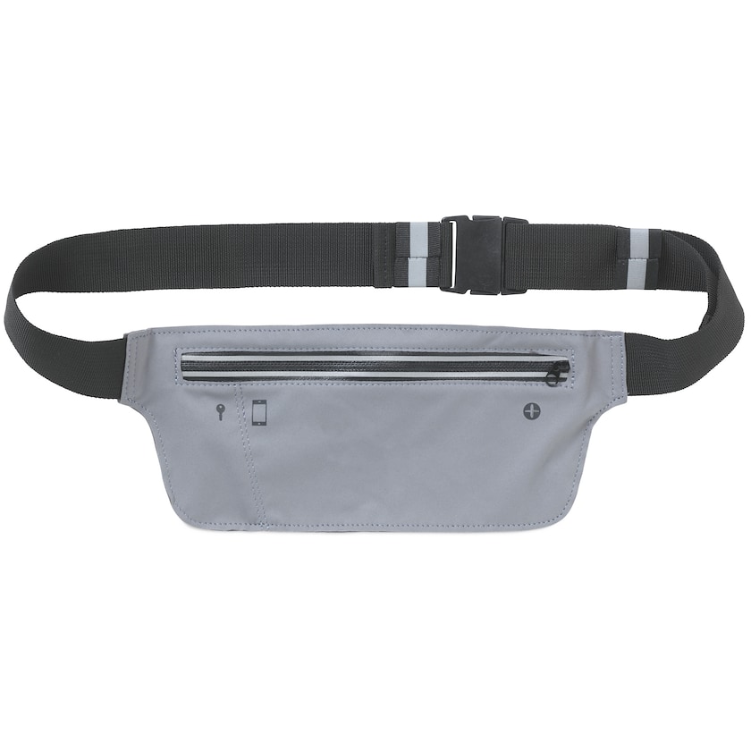 Wasserdichte Hüfttasche mit elastischem Material. Die Bauchtasche hat eine Tasche für Ihr Mobiltelefon mit Öffnung für Kopfhörer, so wie eine separate Tasche für Schlüssel. Nur 1-farbiger Druck möglich.