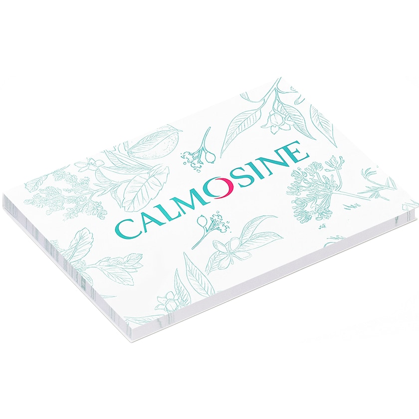 Notizblock in A7, Umschlag mit 4-Farbdruck. Druck im Preis enthalten. Kleber entlang der langen Seite. Druck in 1 bis 4 Farben auf dem Blatt möglich.
