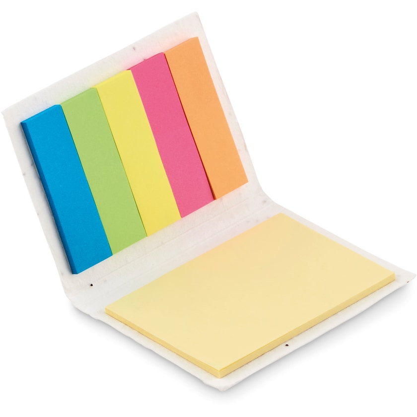 Marker-Tabs mit Kornmohnsamen. Das Set besteht aus einem Haftnotizblock und 5 farbigen Klebestreifen. Nach Verbrauch kann das Set eingepflanzt werden und lässt schönen Kornmohn sprießen.