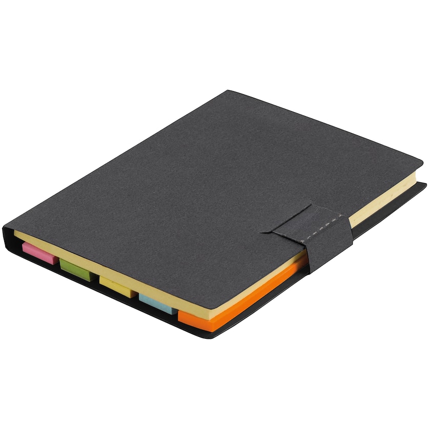 Set mit Markierungsstreifen und Notizblöcken. Die Markierunghsstreifen und die beiden Notizblöcke enthalten jeweils 25 Blatt. Das schwarze Set hat eine schwarze Innenseite, während das naturfarbene und blaue Set eine weiße Innenseite haben.