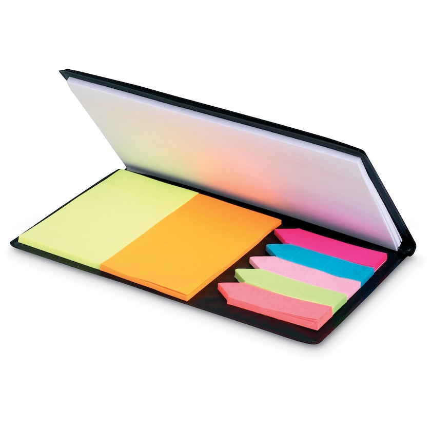 Mäppchen mit Notizblock, Schreibblock und Haftstreifen.