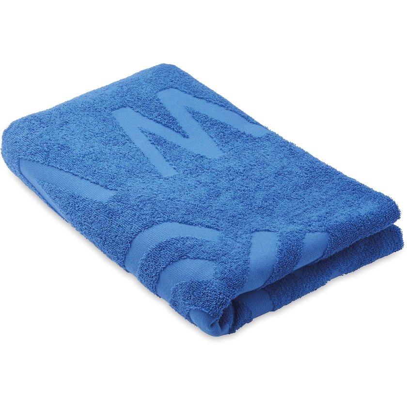 Badetücher mit Ihrem Logo im Relief. An der Stelle, an der Ihr Logo erscheint, fehlen die normalen Frotteeschlaufen des Stoffes, wodurch ein schöner Reliefeffekt entsteht. Die Rückseite ist ohne den Relief-Effekt. Sie wählen die Farbe des Handtuchs, indem Sie den gewünschten Pantone-Code angeben. Der Stoff hat ein Gewicht von 350 g/m². Die Badetücher werden einzeln verpackt in Polybeuteln geliefert. Sie werden in Europa hergestellt.
