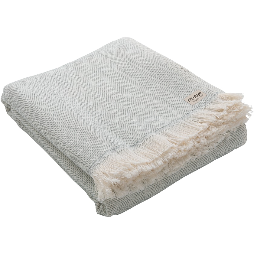 Luxeriöses Handtuch mit vielen Einsatzmöglichkeiten. Kosaka besteht aus OEKO-TEX zertifizierter Baumwolle und recycelter Baumwolle. Obwohl der Stoff dünn ist, hat das Handtuch eine ausgesprochen hohe Saugfähigkeit. Das Handtuch funktioniert genau so gut als Picknickdecke, Überwurf oder Tischdecke. Produziert in Portugal.