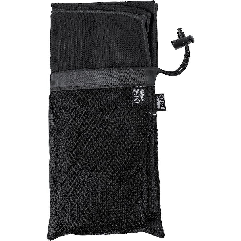 Umweltfreundliches Mikrofaser-Sporthandtuch aus rPET. Sporthandtuch Lake Placid nimmt Feuchtigkeit erstklassig auf. Das Material rPET wird aus recycelten PET-Flaschen hergestellt und ist daher zudem eine gute Wahl für die Umwelt.