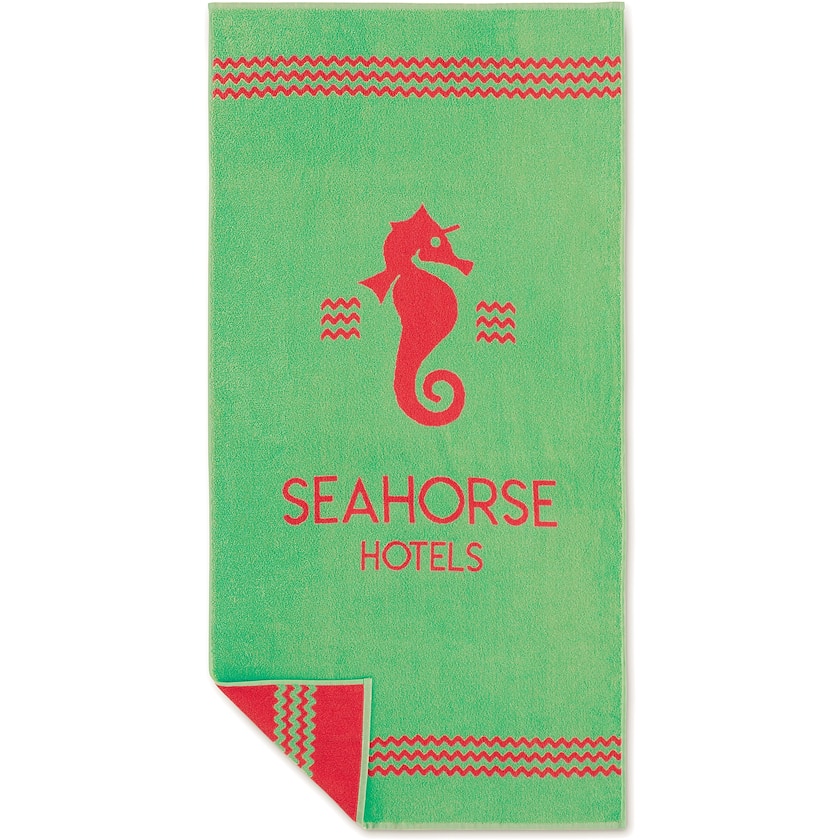 Badetuch, zweifarbig gewebt. Sie wählen die Farben und Motive selbst. Die Rückseite des Handtuchs ist ein Negativ der Vorderseite. Der Stoff wiegt 350 g/m². Die Badetücher werden einzeln verpackt in Polybeuteln geliefert. Die Herstellung erfolgt in Europa.