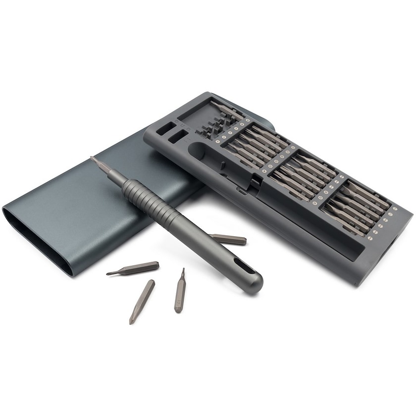 Luxuriöses Schraubendreher-Set mit 48 Bits. Das Set besteht aus Stahl und Aluminium. Ein Premium-Schraubendreher-Set für zu Hause.