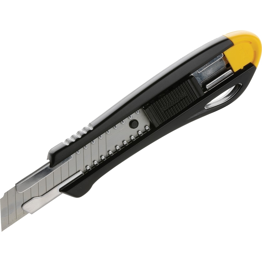Brechmesser aus RCS-zertifiziertem recyceltem ABS. Die Messerklingen sind vom Typ SK4 und können bei Bedarf ausgetauscht werden. Drei Messerklingen im Lieferumfang enthalten. Die Lieferung erfolgt einzeln verpackt in einem naturfarbenen Karton aus FSC-zertifiziertem Papier.