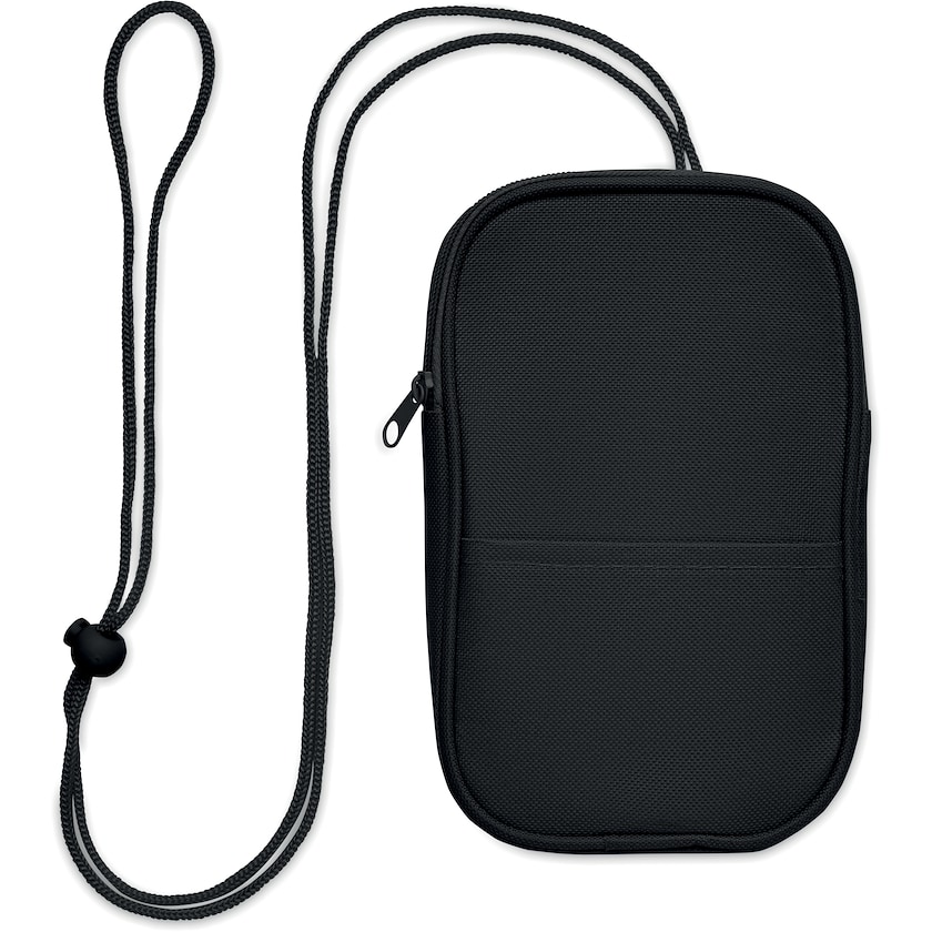 Preisgünstige Handytasche aus recyceltem Material. Die Tasche verfügt über ein Hauptfach mit Reißverschluss. Der Halsriemen ist verstellbar.