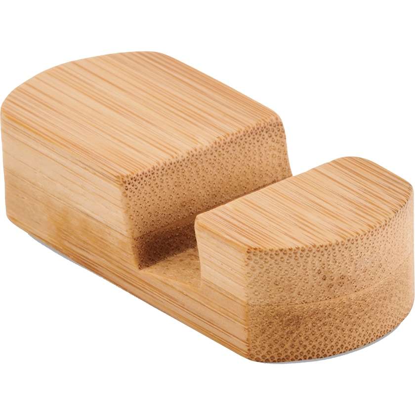 Smartphonehalter aus echtem Bambus. Perfekt, wenn Sie zum Beispiel einen Film ansehen wollen. Die Kennzeichnung erfolgt durch Aufdruck oder Lasergravur.