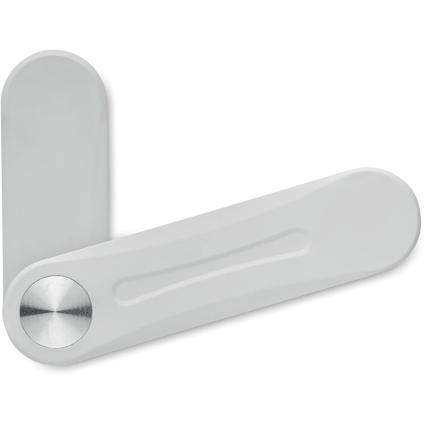 Handyhalter, der an einem Laptop befestigt wird. Sterling hat ein 3M-Klebeetikett an der Rückseite, wodurch er an einem Laptop befestigt werden kann. Das Handy wiederum haftet durch Magnetkraft dank des Metallrings.