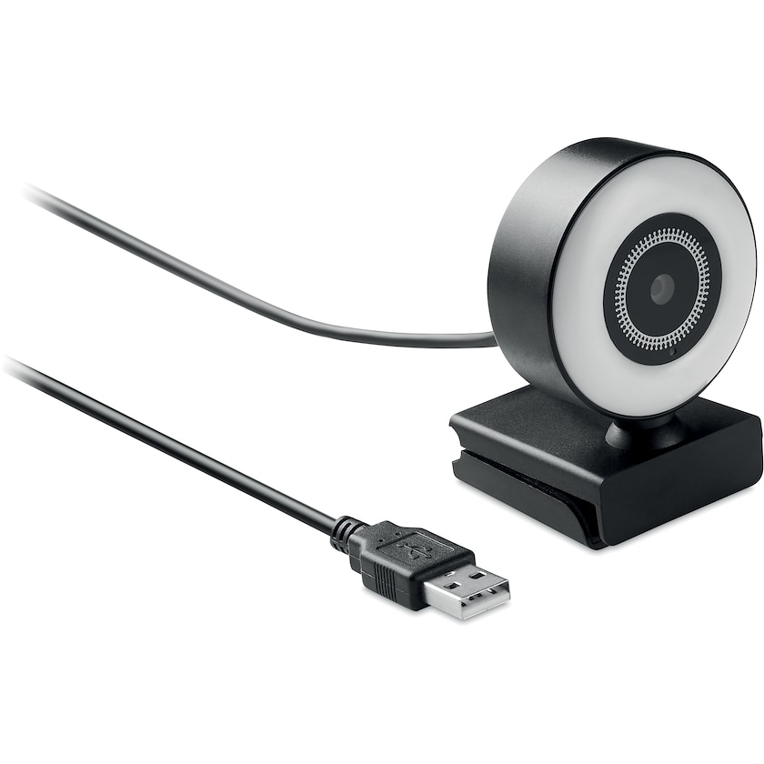 Webcam mit eingebautem Mikrofon und einstellbarer Ringlampe. Perfekt für schnelle Meetings vor dem Computer. Dank der Ringlampe werden Sie hervorragend beleuchtet.