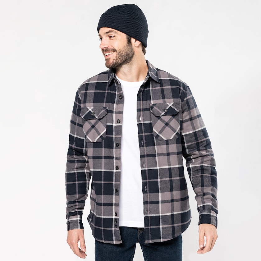 Gefüttertes Hemd aus kariertem Stoff. Das Fütter sorgt dafür, dass das Hemd auch in kaltem Klima warm hält. Die perfekte Wahl für alle, die ein Holzfällerhemd mit Logo suchen.