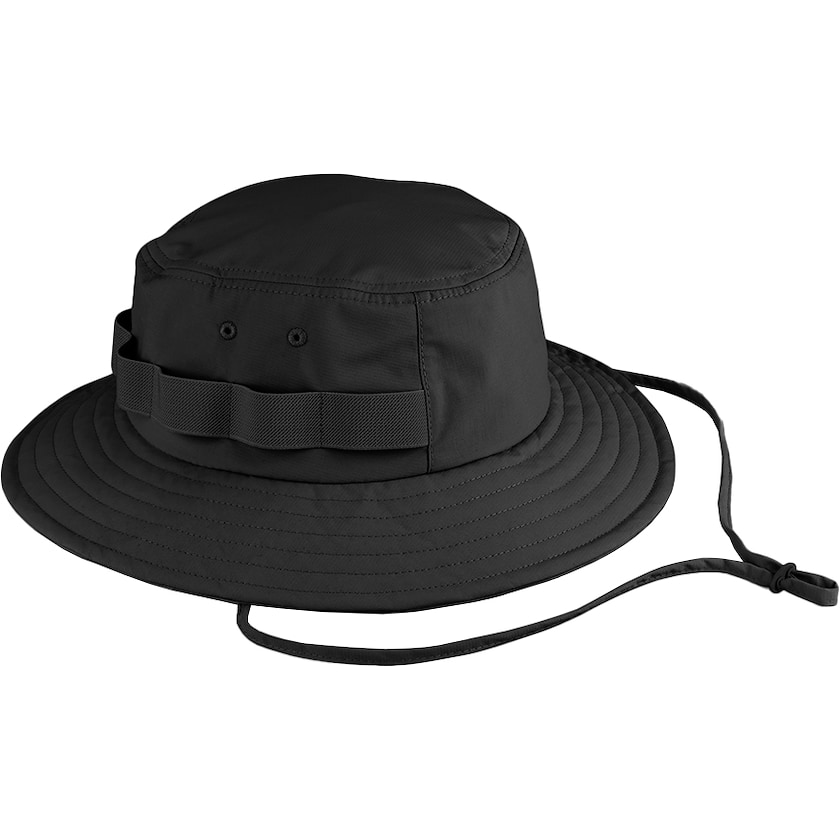 Sonnenhut mit wasserabweisendem Stoff. Der Umhängegurt ist abnehmbar. Der Stoff besteht aus 100 % GRS-zertifiziertem recyceltem Nylon. Mischen Sie frei zwischen den Größen S/M und L/XL.