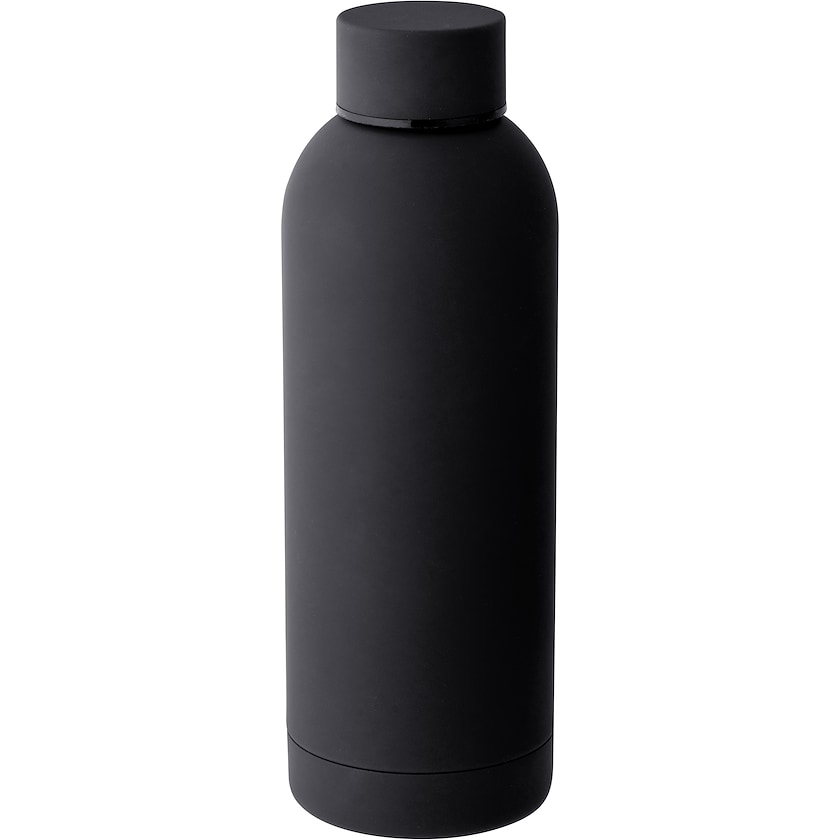 Edelstahl-Thermosflasche mit gummierter Oberfläche. Die Thermosflasche fasst 55 cl und hat einen Schraubverschluss. Die Markierung erfolgt mittels Lasergravur. Die Lieferung erfolgt einzeln verpackt in einer schwarzen Pappbox.
