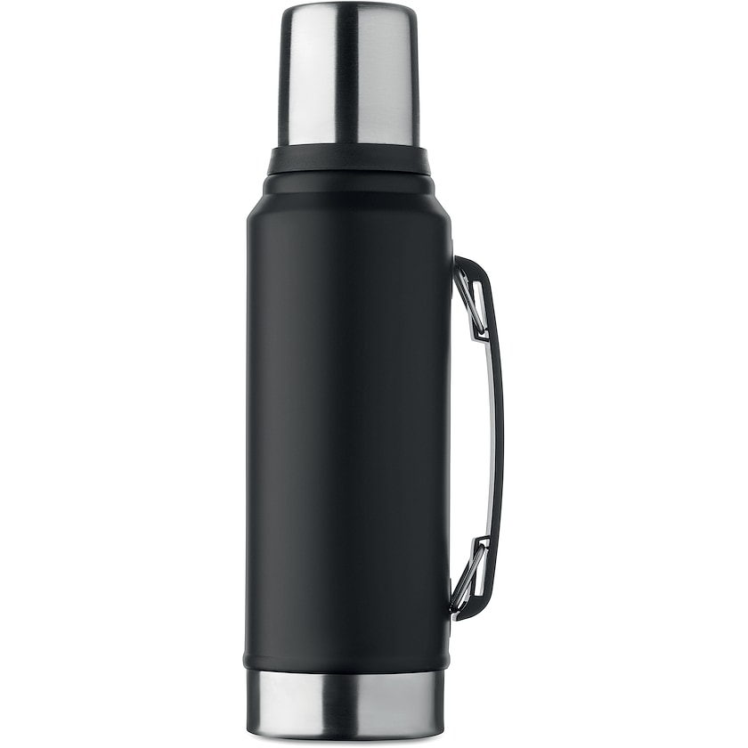 Hochwertige Thermoskanne mit Griff. Die Thermoskanne Helius besteht zu 90 % aus recyceltem Edelstahl und zu 10 % aus normalem Edelstahl. Sie verfügt über doppelte vakuumisolierte Wände und ist absolut auslaufsicher.