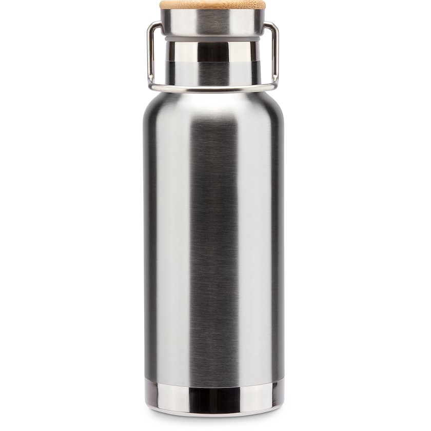 Moderne Thermoflasche bedrucken. Hält Getränke für 48 Stunden kalt und mindestens 12 Stunden warm. Schraubverschluss mit Holzdetails. Die Lieferung erfolgt in einer eleganten Geschenkverpackung. Der Druck kann nur in einer Farbe erfolgen.