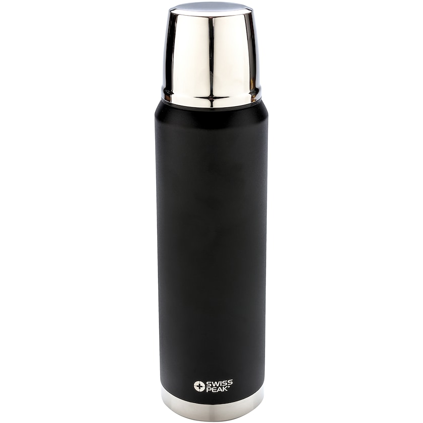 Hochwertige 1 Liter Thermoskanne exklusiv von Swiss Peak. Hergestellt aus rostfreiem Edelstahl mit Kupferbeschichtung im Inneren. Die Thermoskanne hält warme Getränke bis zu 8 Stunden warm und kalte Getränke bis zu 24 Stunden kalt. Handabwasch.