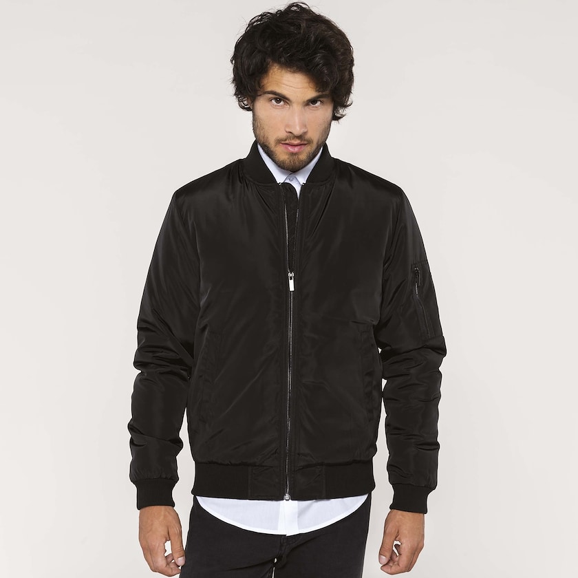 Bomberjacke für Herren. Jacke mit allen klassischen Merkmalen. Die Jacke hat Taschen an dem Seitem, den Ärmeln und Innen. Bestellen Sie Bomberjacken mit Logo bei Axon Profil! Gibt es auch als Damenmodell.