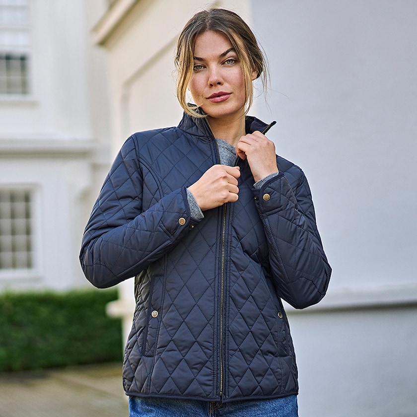 Hochwertige Damenjacke mit gestepptem Stoff. Die Jacke ist aus einem erstklassigem Stoff und hat Aufnäher am Ellenbogen. Passt aufs Land und in die Stadt. Das Logo wird aufgestickt. Gibt es auch als Herrenmodell.