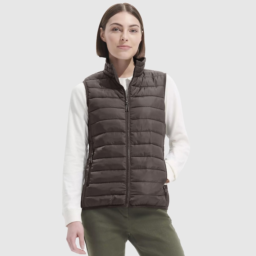 Leichte Damenweste der französischen Marke SOL. Die Weste verfügt über Seitentaschen und einen hohen Kragen. Gibt es auch als Herrenmodell.