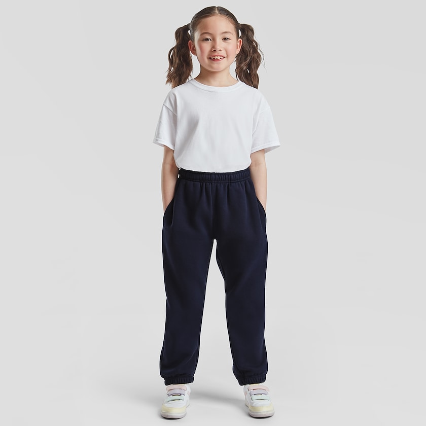 Jogginghose aus robutsem Stoff von Fruit of the Loom. Der Stoff hat eine höhere Polyestermischung als gewöhnlich, wodurch das Kleidungsstück robuster ist. Die Jogginghose ist ohne Schnüre, um Strangulieren zu vermeiden. Wird in Plastikhülle verpackt geliefert. Gibt es auch als Modell für Erwachsene.