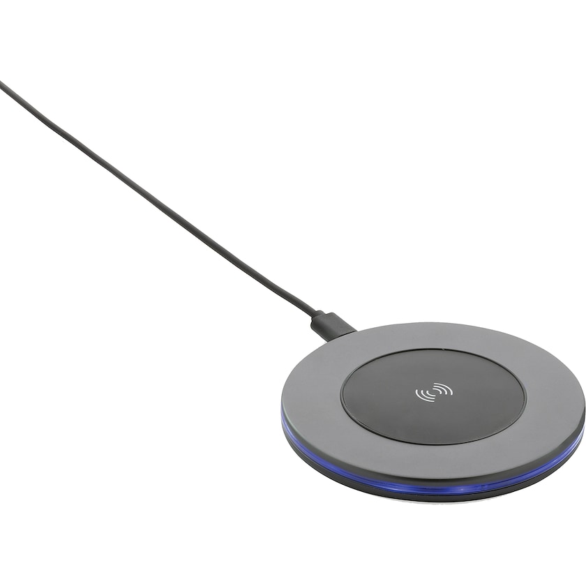 Schnellladendes, kabelloses Ladegerät aus recyceltem Material. Klimt besteht aus recyceltem Aluminium, ABS und TPE. Das Kabel ist 120 cm lang. Wird in einer Geschenkschachtel aus FSC-zertifiziertem Papier geliefert.