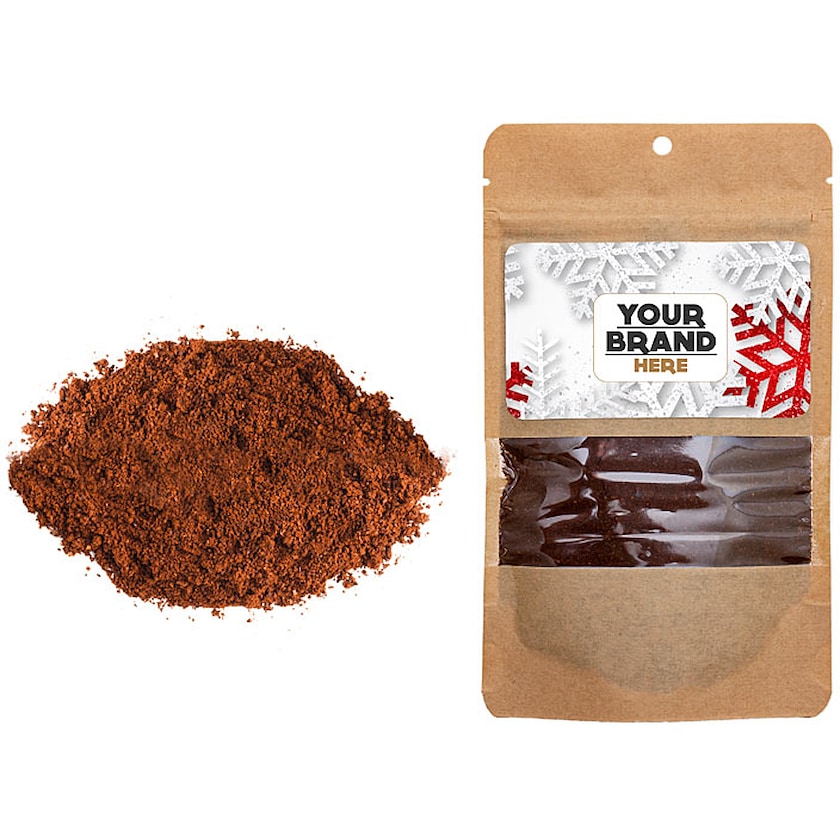 50 Gramm gemahlener Kaffee von hoher Qualität. Der Kaffee besteht aus einer köstlichen Mischung aus Arabica- und Robusta-Bohnen. Lieferung im naturfarbenen Beutel mit Sichtfenster. Auf einer Seite der Tasche ist ein Aufkleber mit Ihrem Aufdruck angebracht.