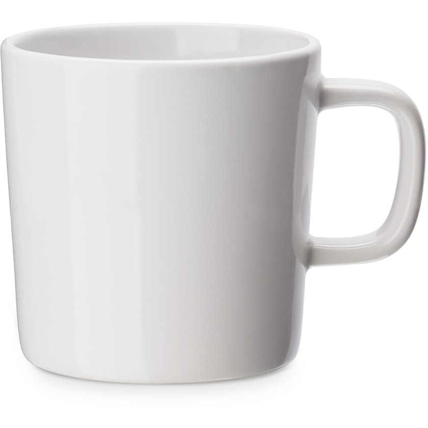 Blanker Kaffeebecher mit feinen Linien. Der Becher ist aus hochwertigem Feinsteinzeug gefertigt. Die straffen Linien verleihen der Tasse einen modernen Eindruck.
