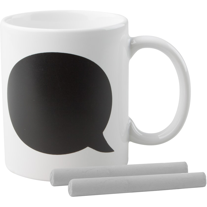 Kaffeebecher mit Sprechblase, in die Sie Ihre Botschaft schreiben können. 2 Stück Tafelkreide werden mitgeliefert.