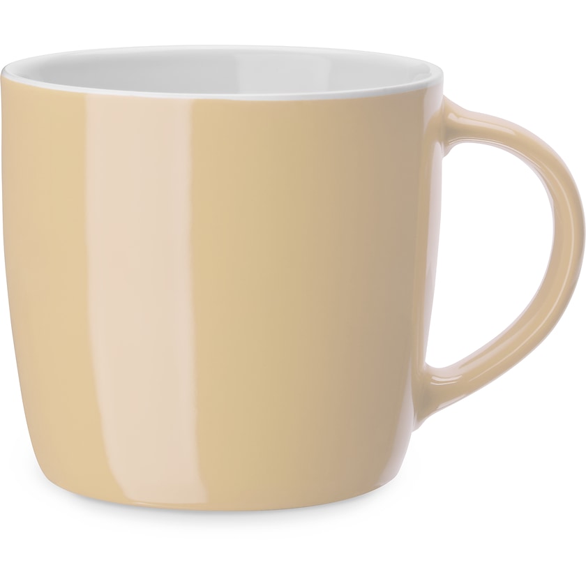 Schöne Steingutstasse mit farbiger Außenseite und weißer Innenseite. Die Tasse wird einzeln verpackt in einem naturfarbenen Pappkarton geliefert.