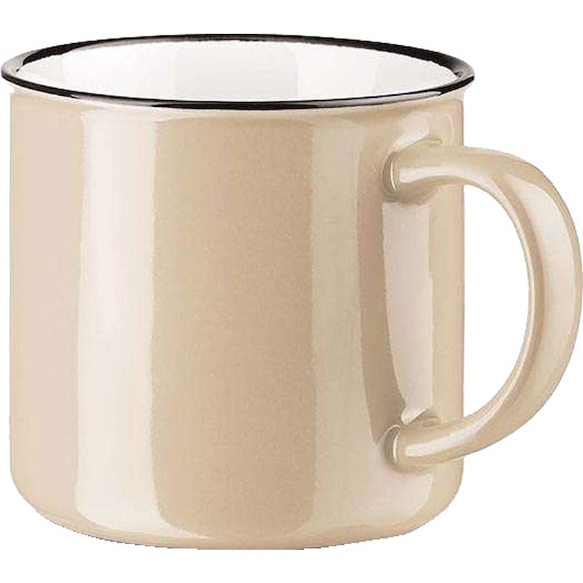 Steingutbecher mit Retro-Design. Das Design lehnt sich an klassischen Emaillebechern an. Der Becher hat eine große Druckfläche und ist in vielen Farben erhältlich. Nur für Handabwasch.