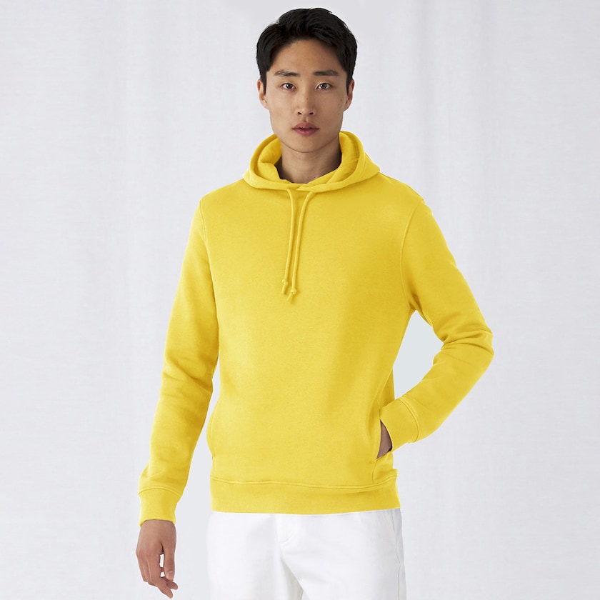 Umweltfreundlichen Hoodie bedrucken von B&C. Der Hoodie ist aus 80 % Bio-Baumwolle und 20 % recyceltem Polyester. Die Farbe heather grey ist aus 71 % Bio-Baumwolle, 25 % recyceltem Polyester und 4 % Viskose. Auch als Damenmodel erhältlich. Ein moderner und eleganter Kapuzenpullover und eine gute Wahl für die Umwelt. Gibt es auch als Damenmodell.