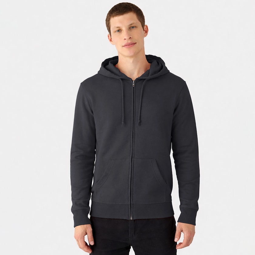 Ökologischen Hoodie bedrucken, mit langem Reißverschluss. Die Kapuzenjacke ist aus 80 % Bio-Baumwolle und 20 % recyceltem Polyester. Die Farbe heather grey ist aus 71 % Bio-Baumwolle, 25 % recyceltem Polyester und 4 % Viskose. Der Preis für die Stickerei bezieht sich auf das Besticken einer Brust. Auch als Damenmodel erhältlich.