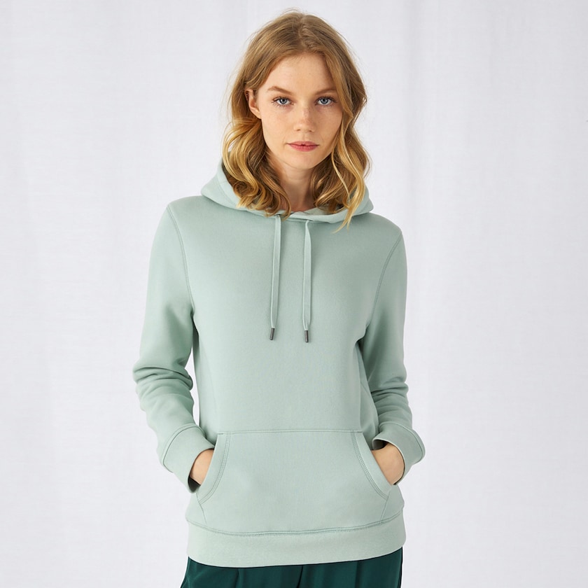 Trendiger Hoodie aus angenehm weichem Stoff. Der Pullover ist aus einem weichen Stoff und in vielen verschiedenen Farben erhältlich. Der Stoff ist aus 80 % Baumwolle und 20 % Polyester, außer der Farbe heather grey, aus 75 % Baumwolle, 21 % Polyester und 4 % Viskose, die "heather"-Farben sind aus 60 % Baumwolle und 40 % Polyester. Gibt es auch als Herrenmodell.