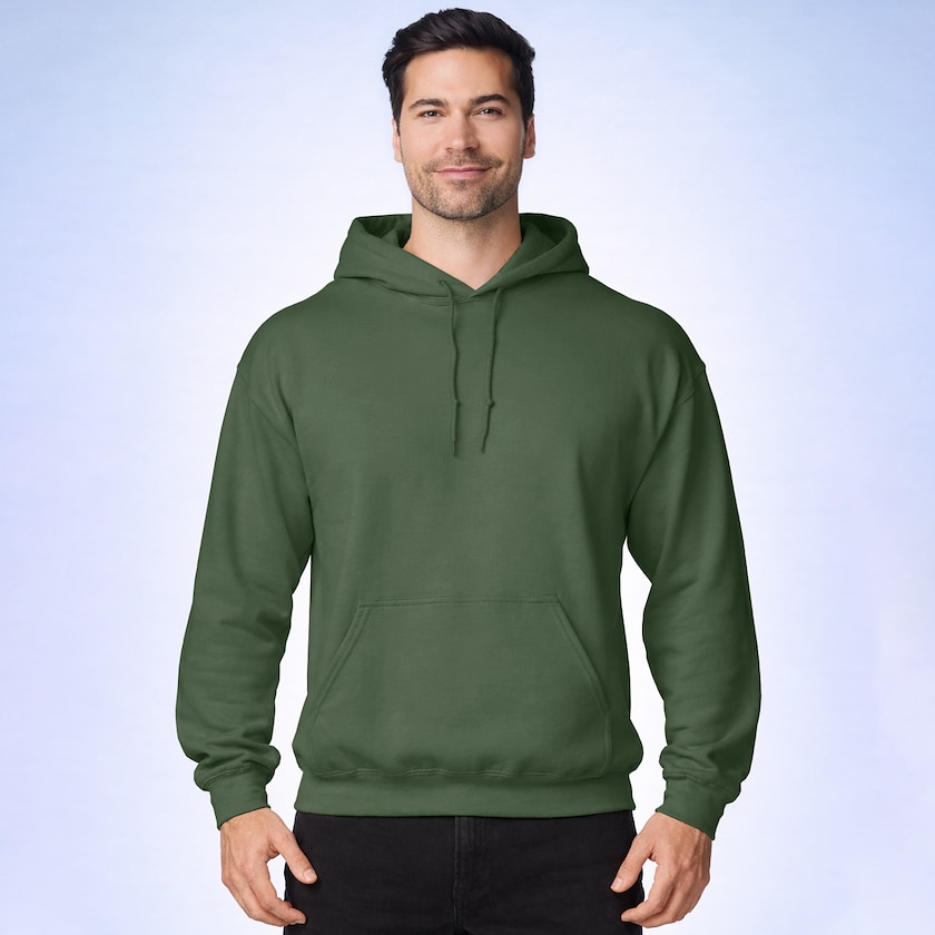 Robuster Hoodie aus Polyestermischung für besondere Strapazierfähigkeit. Der Stoff ist mit sogenannter Air Jet-Technik gewebt, wodurch er sich besonders weich anfühlt. Gildan Heavy Blend Hooded Sweat ist die perfekte Wahl für alle, die einen bequemen und gleichzeitig robusten Hoodie suchen. Der Pullover wird in Plastiktüte verpackt geliefert. Gibt es auch als Modell für Kinder.
