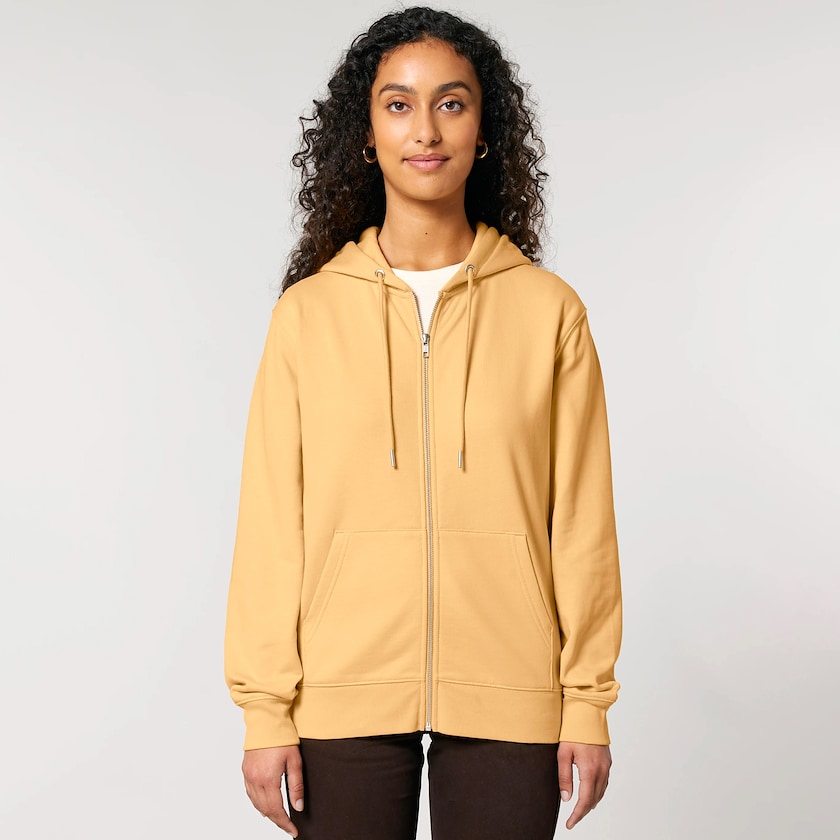 Umweltfreundlicher Kapuzenpullover für Damen und Herren mit langem Reißverschluss. Der Hoodie besteht aus 100 % Bio-Baumwolle.