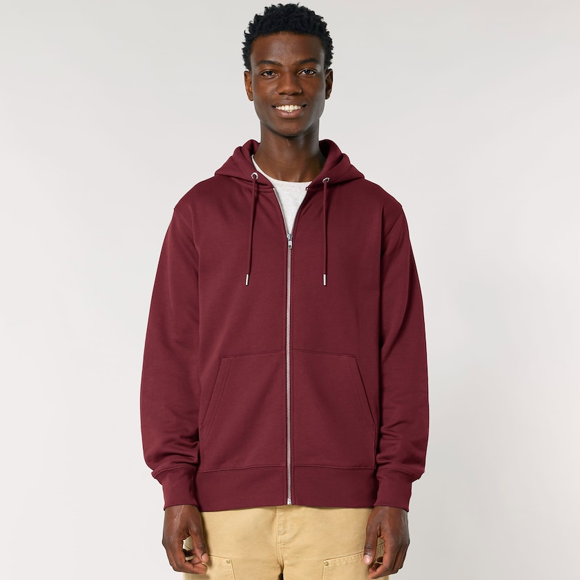 Umweltfreundlicher Kapuzenpullover für Damen und Herren mit langem Reißverschluss. Der Hoodie besteht aus 100 % Bio-Baumwolle.