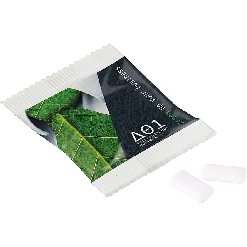 Kaugummipackung aus Papier mit Ihrem Aufdruck. Sims enthält 2 zuckerfreie Kaugummis mit Minzgeschmack.