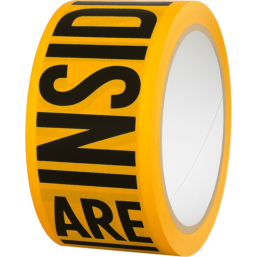 Hochwertiges, leises Klebeband bedrucken auf der Unterseite. Dank des sogenannten Sandwichdrucks (Druck von der Unterseite) ist der Druck vor Abnutzung geschützt.