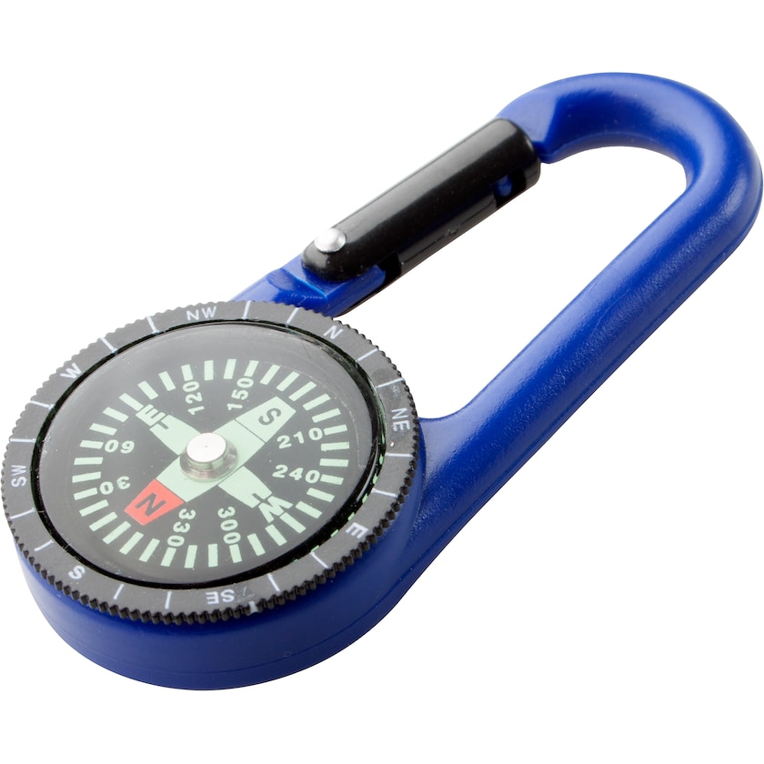 Praktisch! Karabinerhaken aus Kunststoff mit deutlichem Kompass.