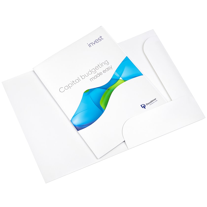 Schöne preiswerte Präsentationsmappe zum Bedrucken. Die Innenseite ist weiß, die Außenseite wird nach Ihren Wünschen mit 4-Farbdruck versehen.