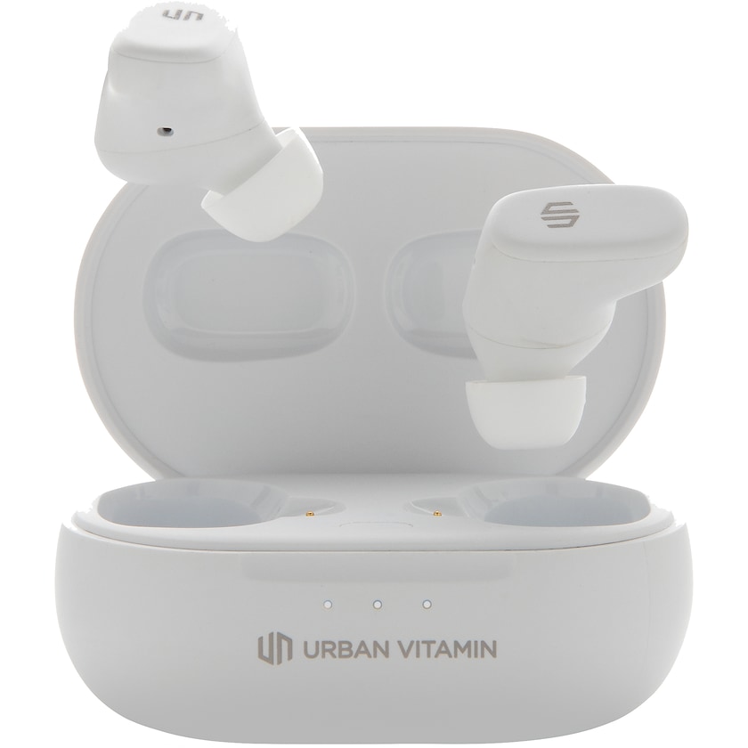 Kabellose Kopfhörer mit ANC und ENC. Die Kopfhörer haben einen erstklassigen Klang und trotzen, dank ihrer IPX 5-Kennzeichnung, Wind und Wetter. ANC ermöglicht es, beim Musikhören alle störenden Außengeräusche zu unterdrücken. ENC blockiert auf ähnliche Weise externe Geräusche, wenn Sie einen Anruf entgegennehmen. Sie können unkompliziert Anrufe über eine Touch-Funktion annehmen. Mit vollständigem Akku bieten die Kopfhörer 5 Stunden Spielzeit und die Aufbewahrungsbox, die als Ladestation fungiert, ermöglicht 20 Stunden Spielzeit.