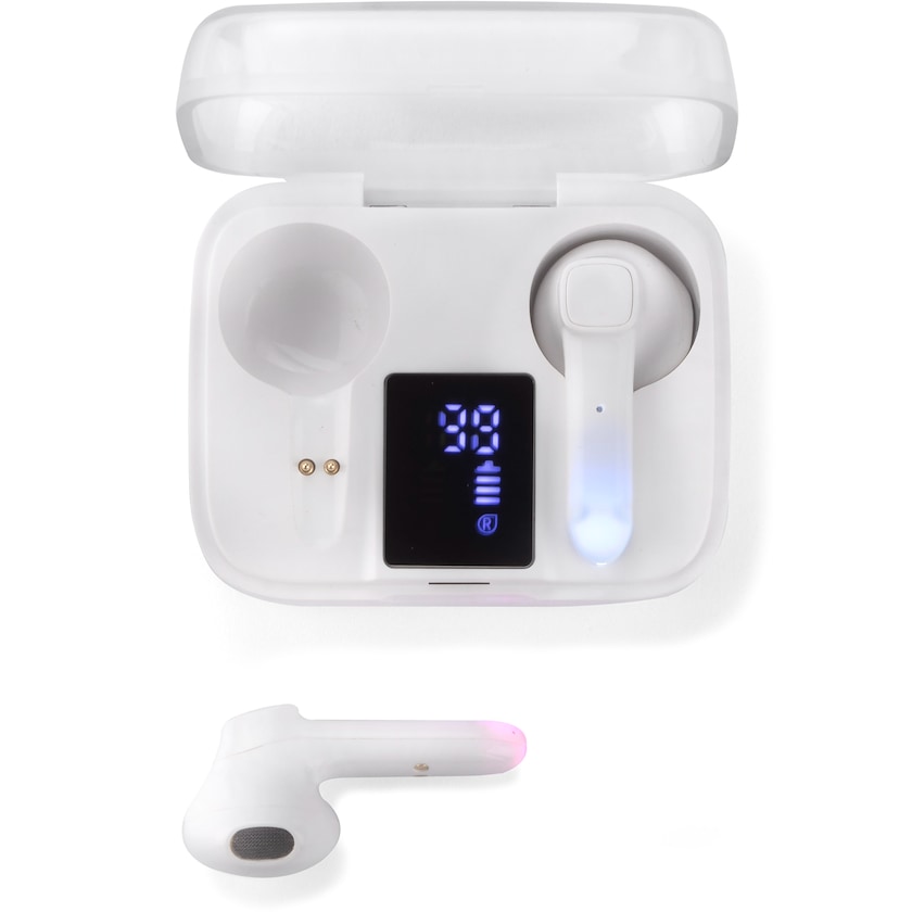 Kabelloser Kopfhörer mit Mikrofon. Die Kopfhörer werden in einer Aufbewahrungsbox geliefert, in der die Kopfhörer auch aufgeladen werden. Die Spielzeit beträgt bis zu 3 Stunden und die Standby-Zeit 300 Stunden. Dank des Mikrofons können Sie mit den Kopfhörern auch telefonieren.