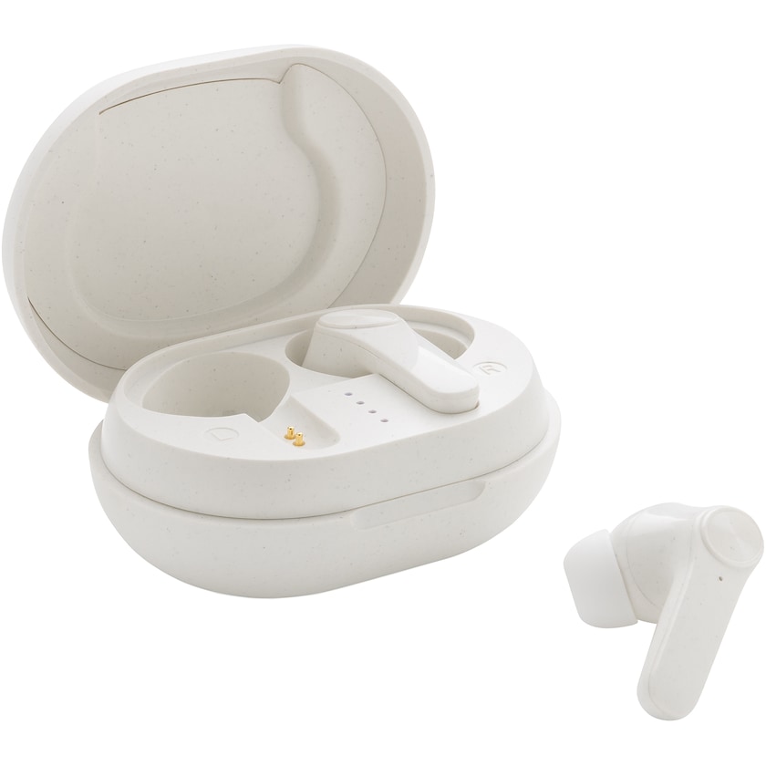 In-Ear-Kopfhörer aus recyceltem Kunststoff. Die Kopfhörer verwenden BT 5.0 für eine absolut reibungslose Verbindung und extra lange Spielzeit. Die Spielzeit beträgt 4 Stunden mit einer Ladung und eine Ladung dauert 1,5 Stunden. Die Kopfhörer verfügen über ein Mikrofon, sodass auch Telefonanrufe entgegengenommen werden können.