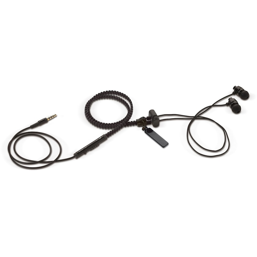 In-Ohr-Kopfhörer mit Mikrofon mit Reißverschluss zum Verkürzen der Strippen. Der Reißverschluss verringert den Kabelsalat. Das Logo wird auf den Reißverschluss gedruckt. Wird in einem schicken Mikrofaserbeutel geliefert.