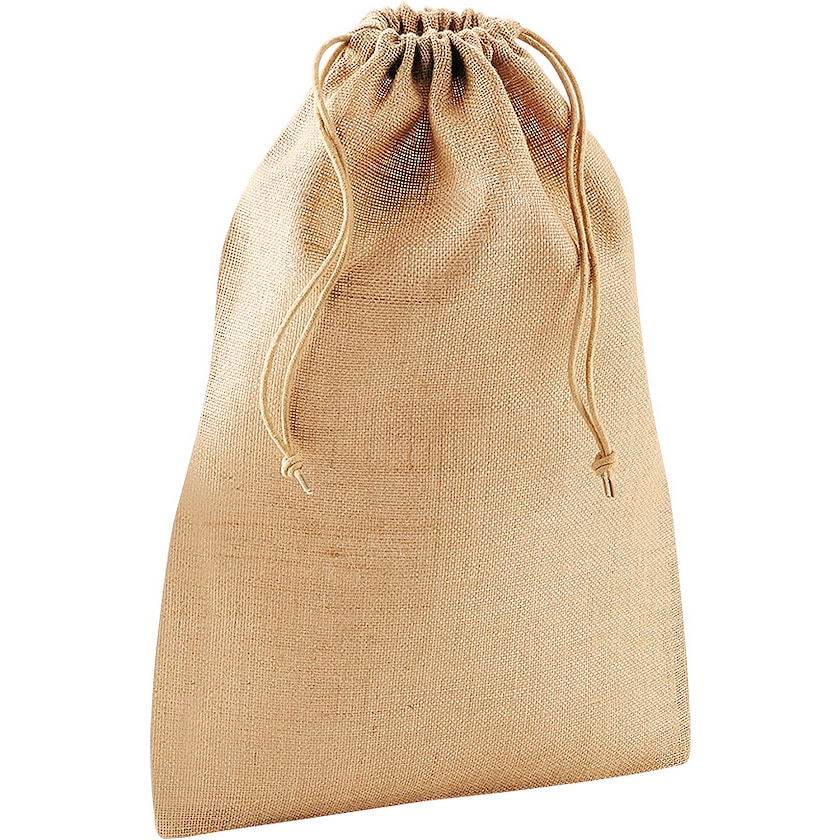 Eleganter Jutebeutel mit Zugverschluss. Fasst 3Liter. Aus drucktechnischen Gründen kann der Druck in maximal zwei Farben erfolgen und die beiden Druckfarben dürfen sich nicht berühren.