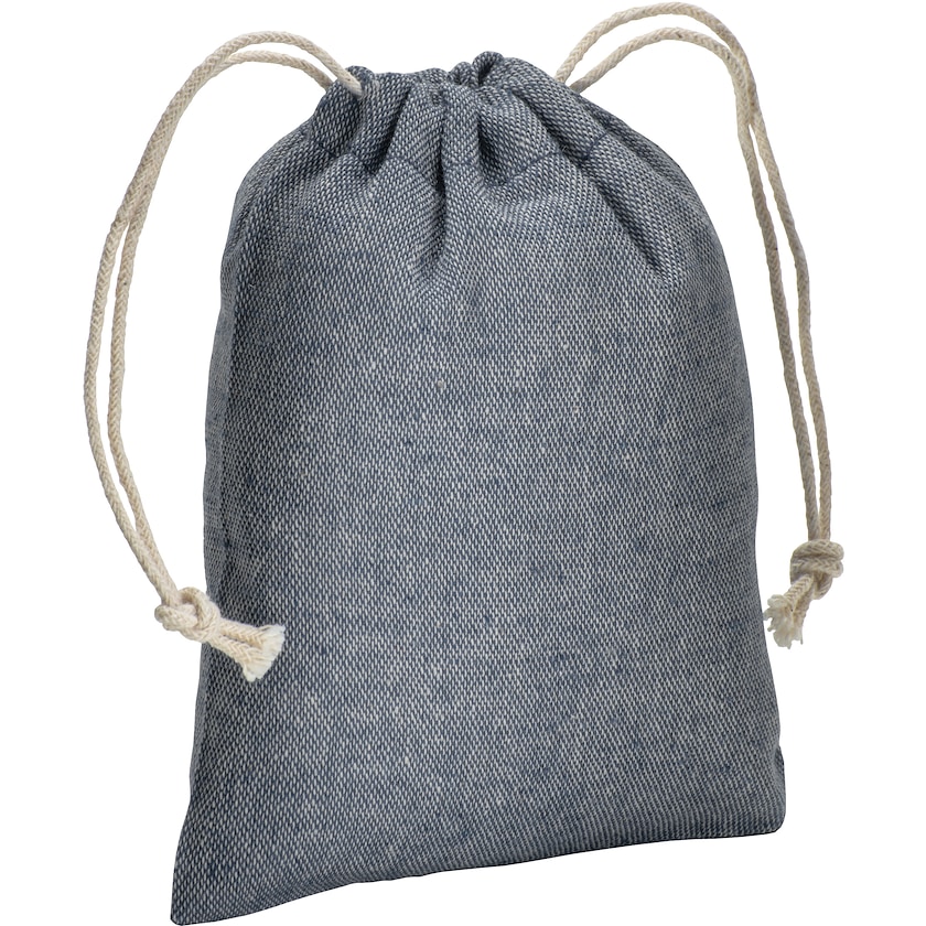 Kleine Baumwolltasche aus recycelter Baumwolle. Der Stoff ist 150 Gramm schwer und leicht meliert.