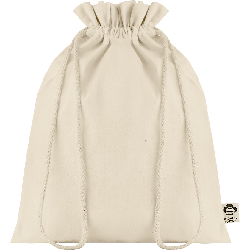 Mittelgroßer Baumwollbeutel aus Bio-Baumwolle. Der Beutel besteht aus 100 % Bio-Baumwolle. Ein natürlich schöner Geschenkbeutel!